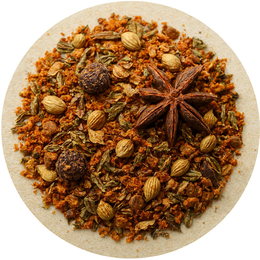 OBSAH : Kayenský pepř, Kyselina citronová, Kypřící prášek do perníku , Kurkuma, Kopr, Koriandr, Kmín