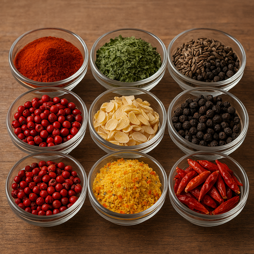 Obsahuje: 100 g Kuřecí vývar, 100 g Hovězí vývar, 100 g Uzený vývar, 100 g Zeleninový vývar, 100 g Vega - kořenící směs bez glutamanu